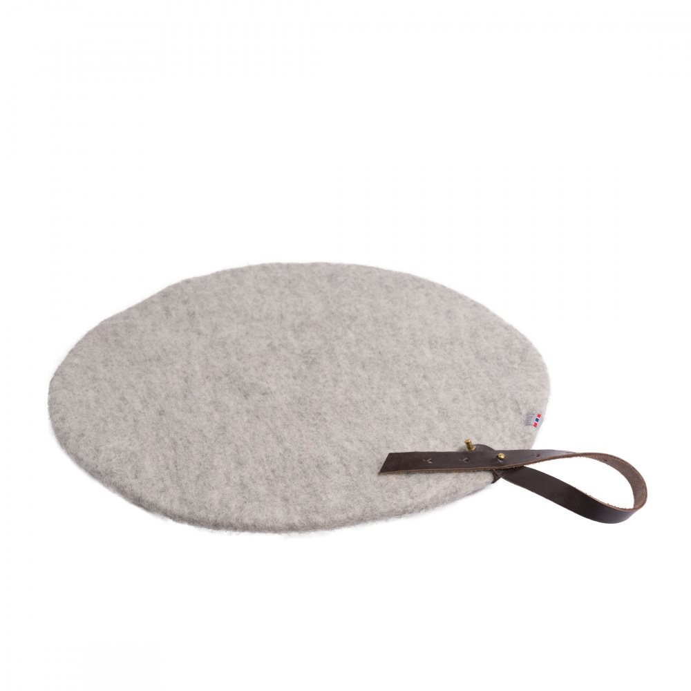 Thanks to the wool's water-repellent properties, you stay warm and dry, even on damp surfaces and snow. The practical leather strap means that the seat pad can be easily rolled up to be fastened or placed in the backpack. Suitable for both outdoor and indoor use.
