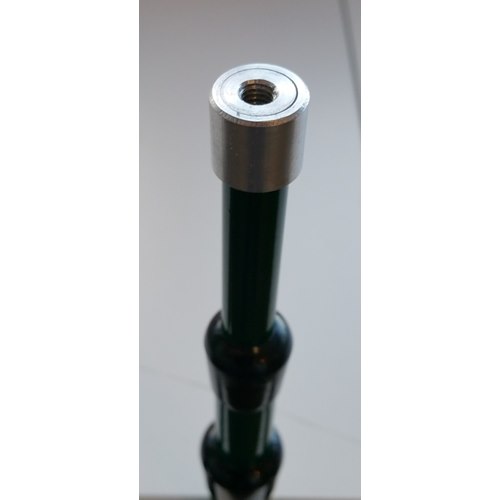 Tredelat teleskopskaft i aluminium som kan ställas mellan 65 cm till 140 cm. I toppen sitter ett skruvhål M6 som är komplatibelt med alla stålringar i vårt sortiment. För att förlänga skaftet rotera sektionen som ska ut medurs, lås den med en rotation moturs.