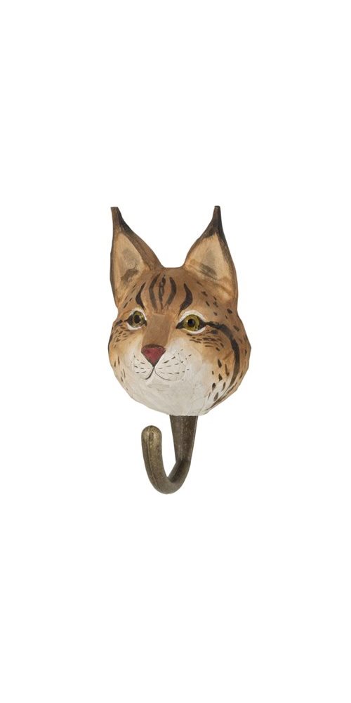 Handsnidad krok föreställandes en lokatt. Den är fint skurna i lindträ och penselmålade i miljövänlig akrylfärg. Kroken är i bronsfärgad metall och fästs i väggen med skruv. Det medföljer ett litet häfte med fakta om arten.