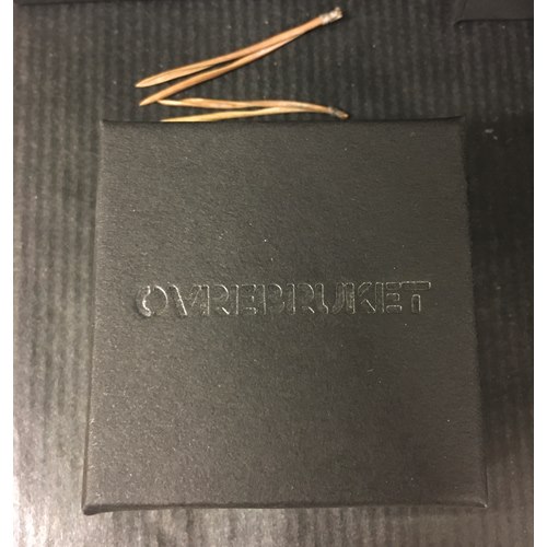 De två örhängena levereras i vadderad, svart ask med logga.